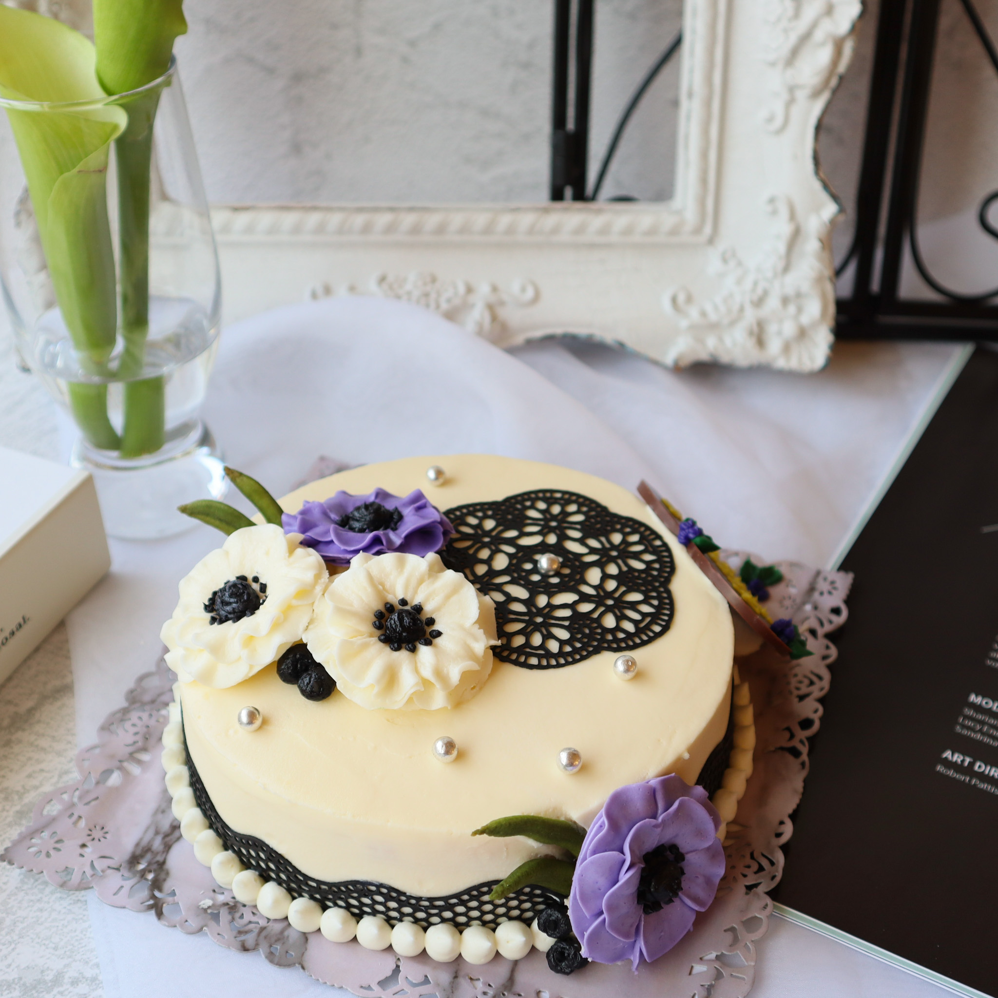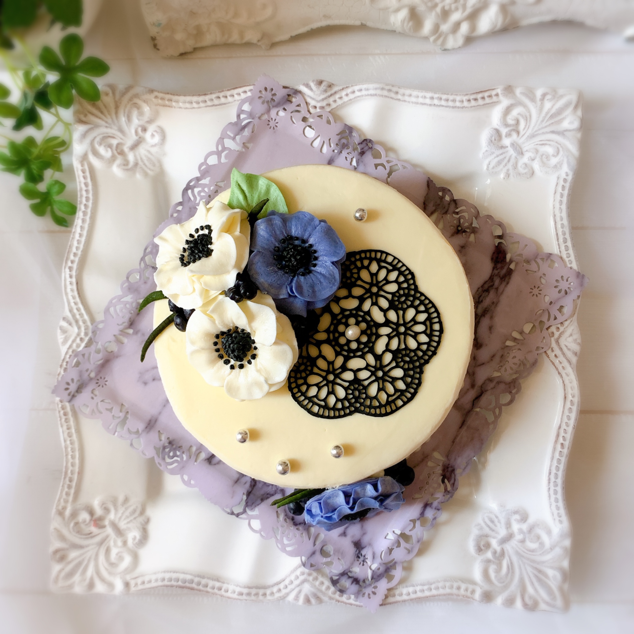 アネモネとパールのフラワーケーキ(チーズケーキ味)