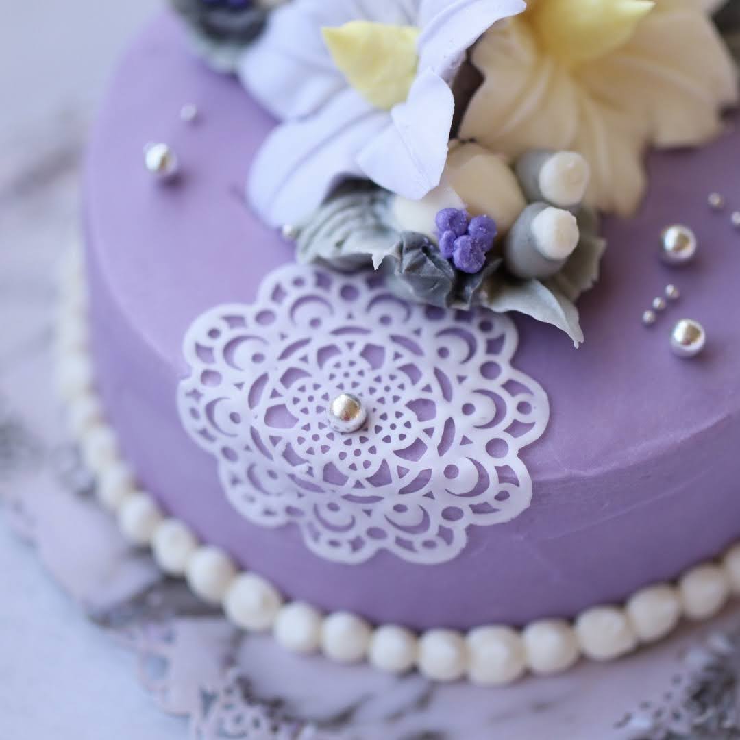 カサブランカとシュガーレースのフラワーケーキ(チーズケーキ味)