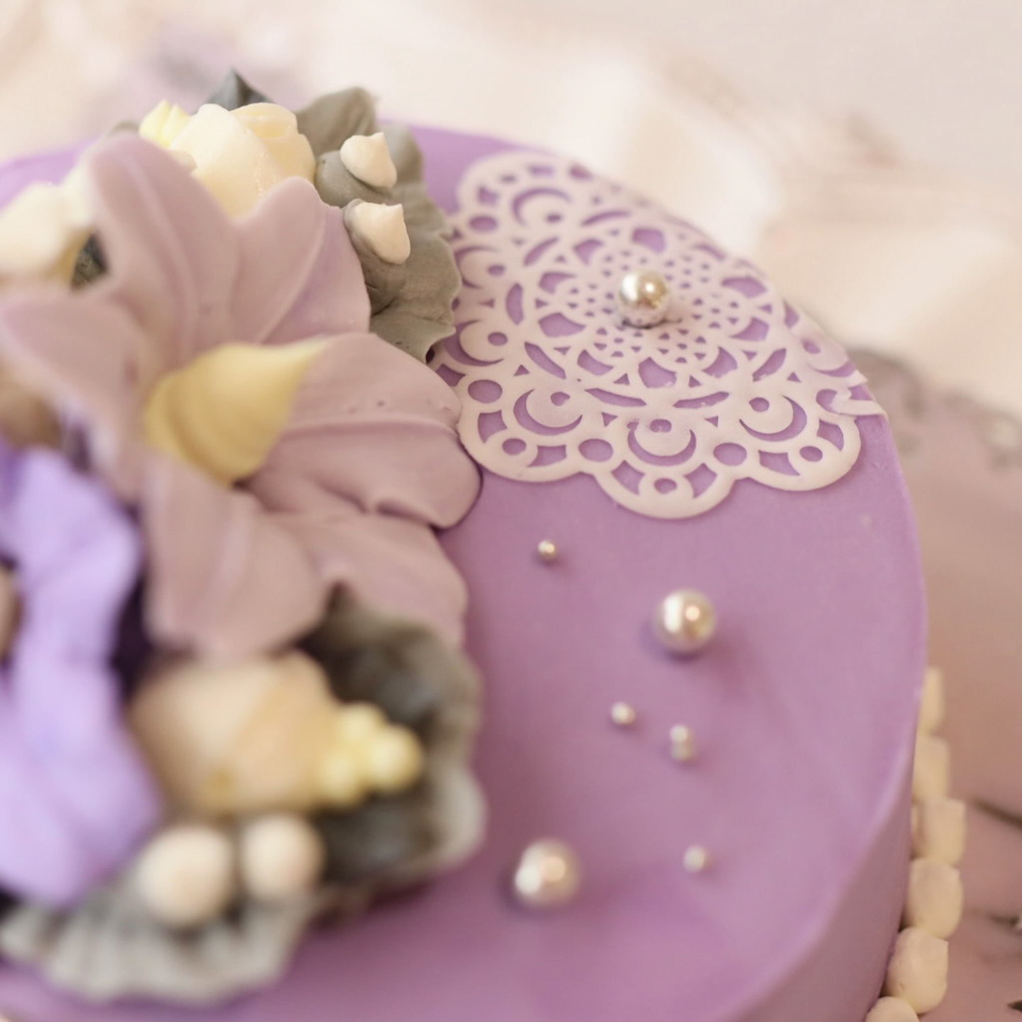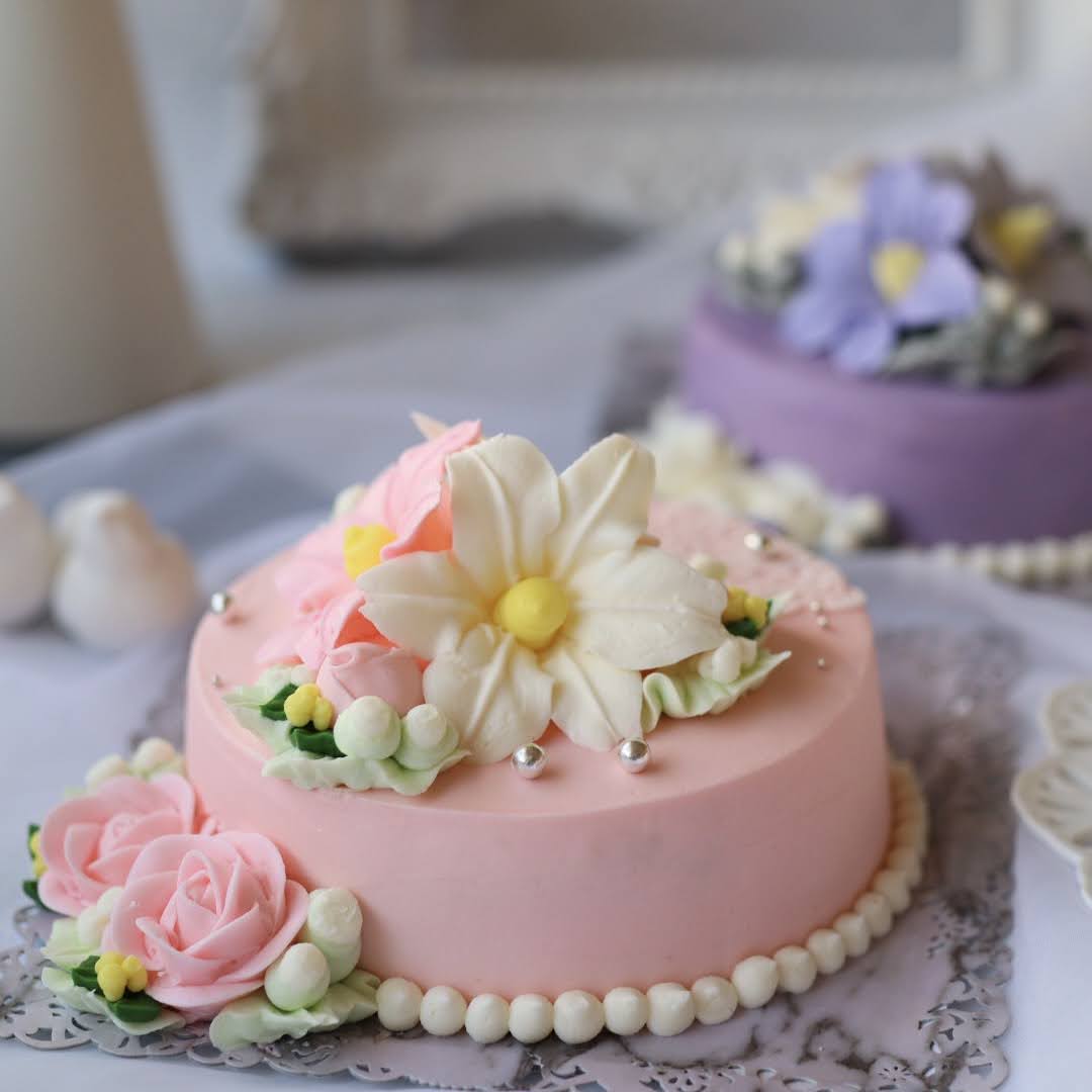 お花はクリームでできており、全て食べられる感動のフラワーケーキです。高級カルピスバターにホワイトチョコレートと生クリームを合わせて作った、オリジナルのバタークリームです。