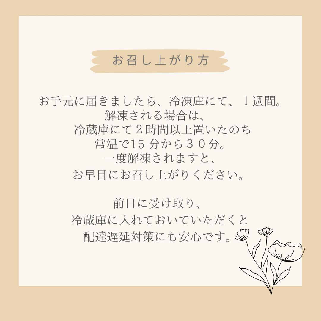 冷凍便でお届けします。到着後は冷凍庫にて保存してください(日持ち:1週間)。【お召し上がり方法】