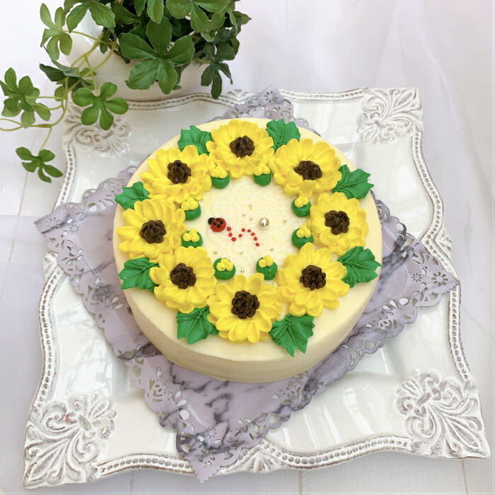 黄色いデージーリースのフラワーケーキ(チーズケーキ味)