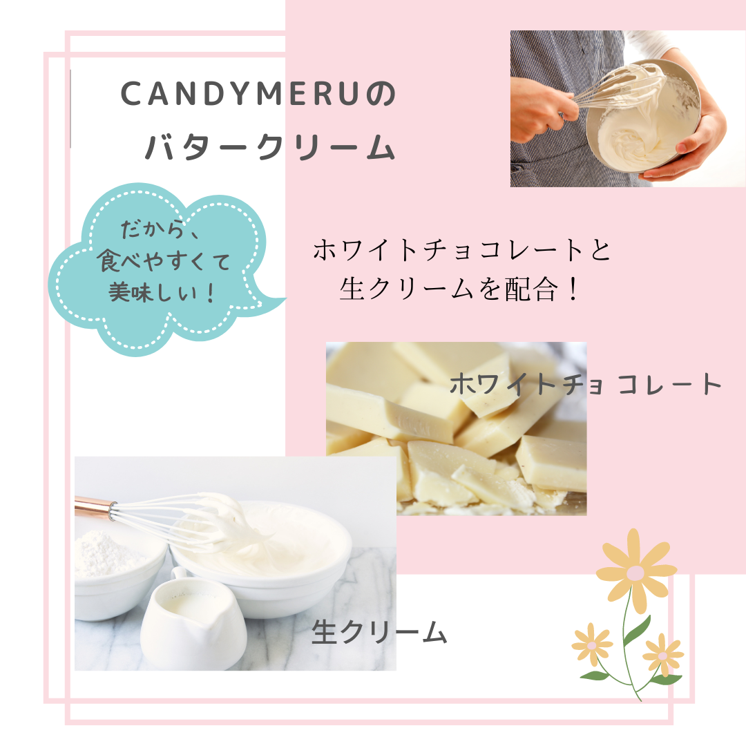 チョコレートと生クリームで作ったバタークリームで絞った、ぷっくりと白いお花に
