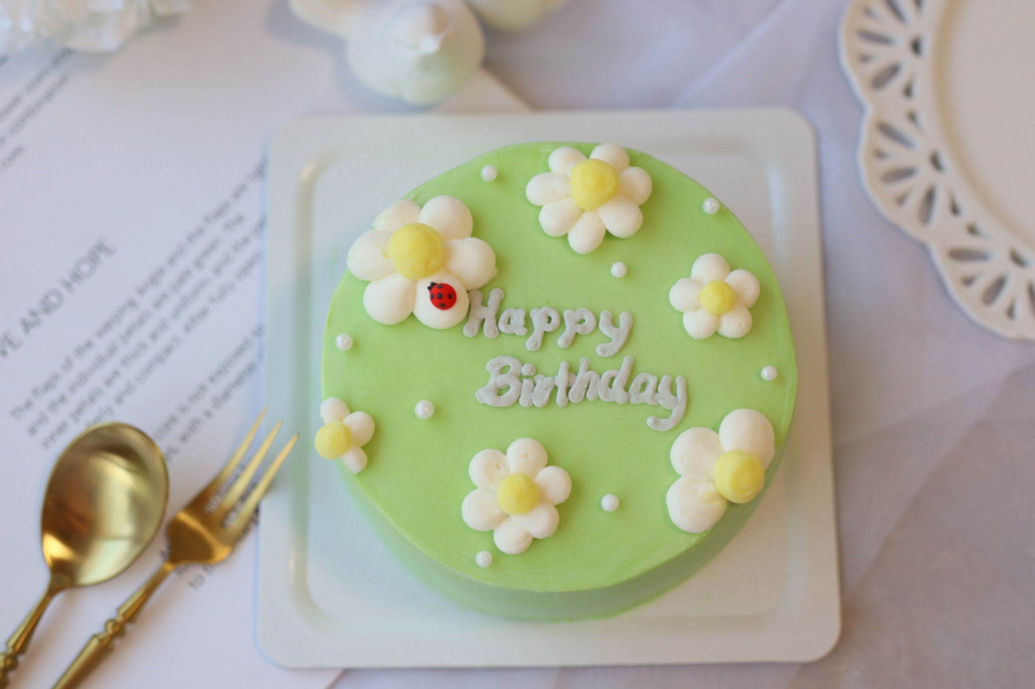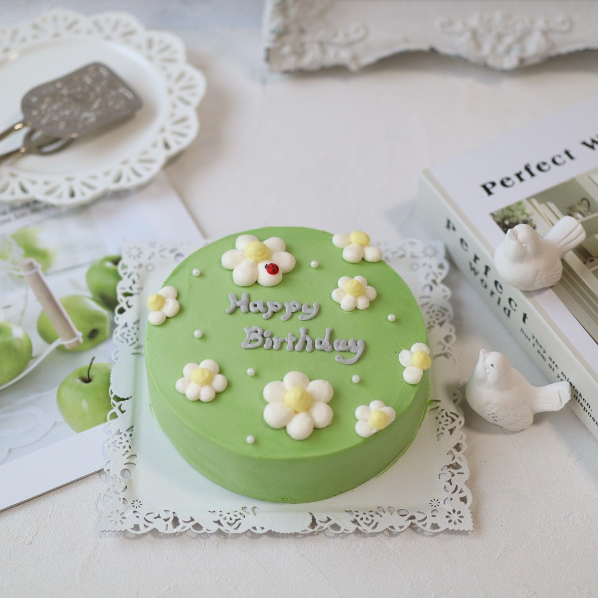4号小さいケーキシリーズ 萌黄色のお花のケーキ