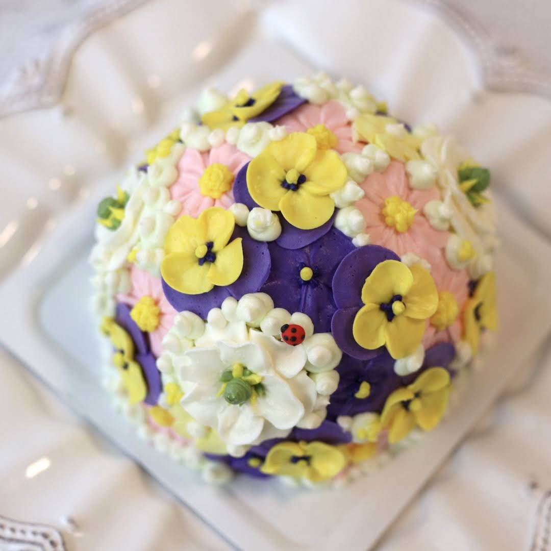 お花いっぱいの華やかで美しいドーム型のケーキの